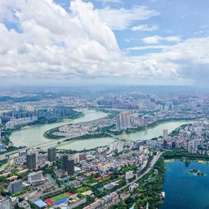 這是南寧市邕江、南湖及周邊建筑(6月14日攝,無人機照片)。
