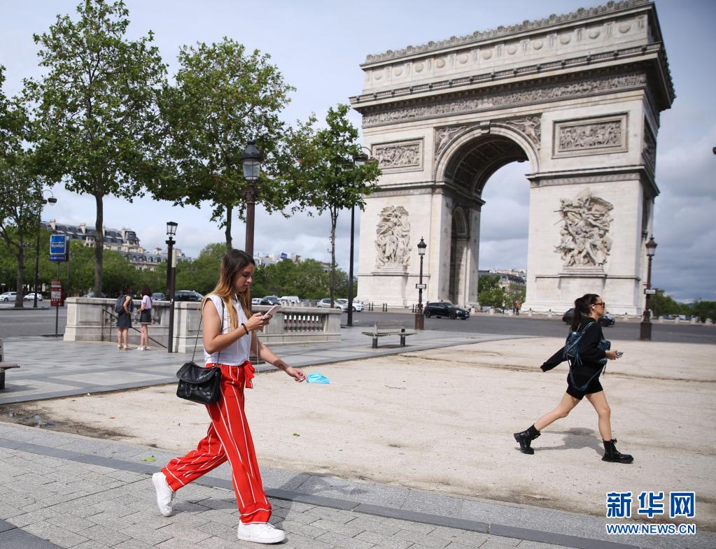 6月17日,一名女子手拎口罩走過法國巴黎凱旋門。