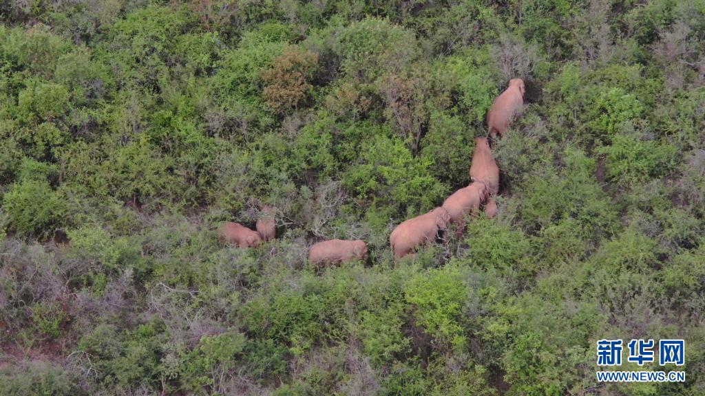 云南北移亞洲象群向南遷移返回峨山縣