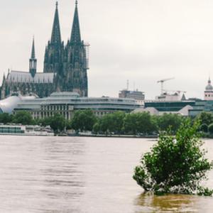這是7月15日在德國(guó)西部城市科隆拍攝的水位上漲的萊茵河。