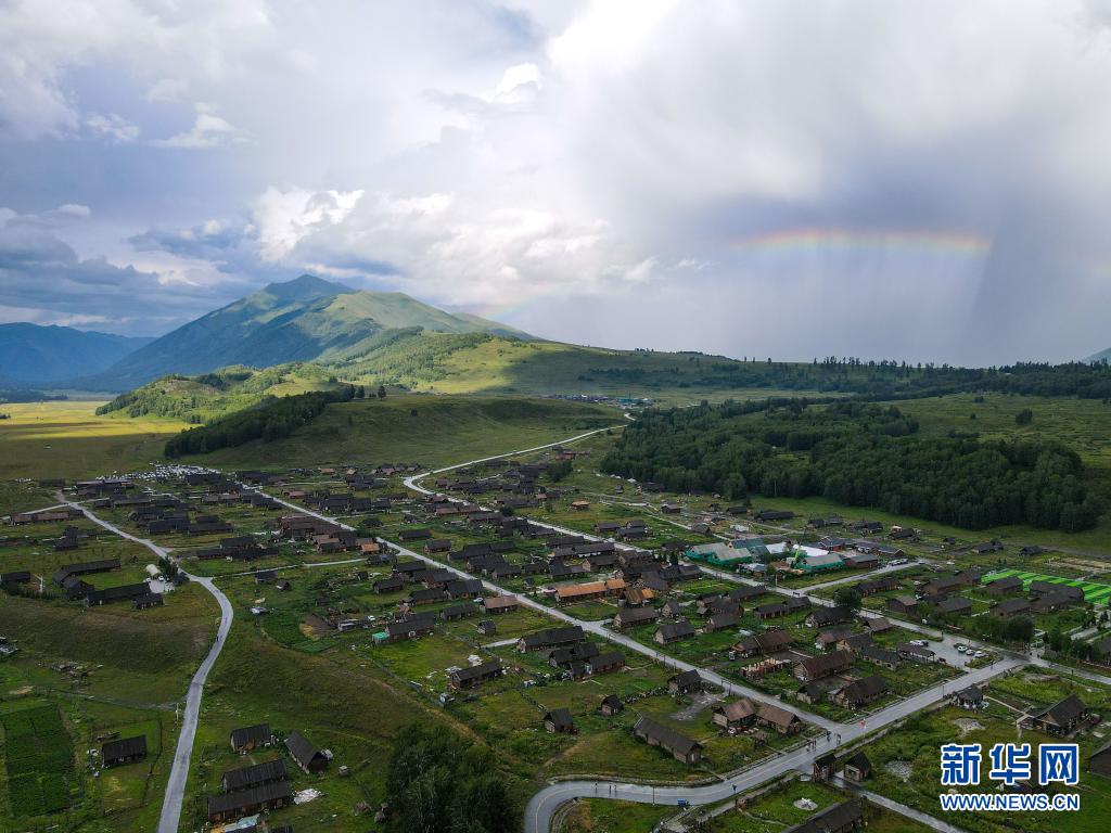 這是7月24日拍攝的禾木村風貌(無人機照片)。新華社記者 高晗 攝