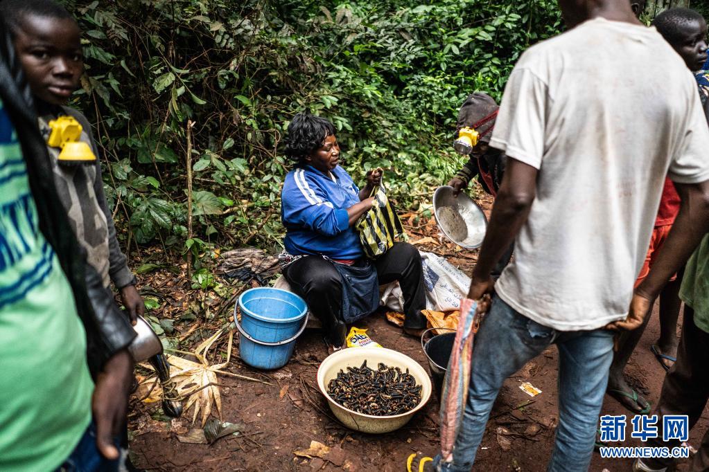 7月17日,當地人在中非共和國洛巴耶省交易蟲子。