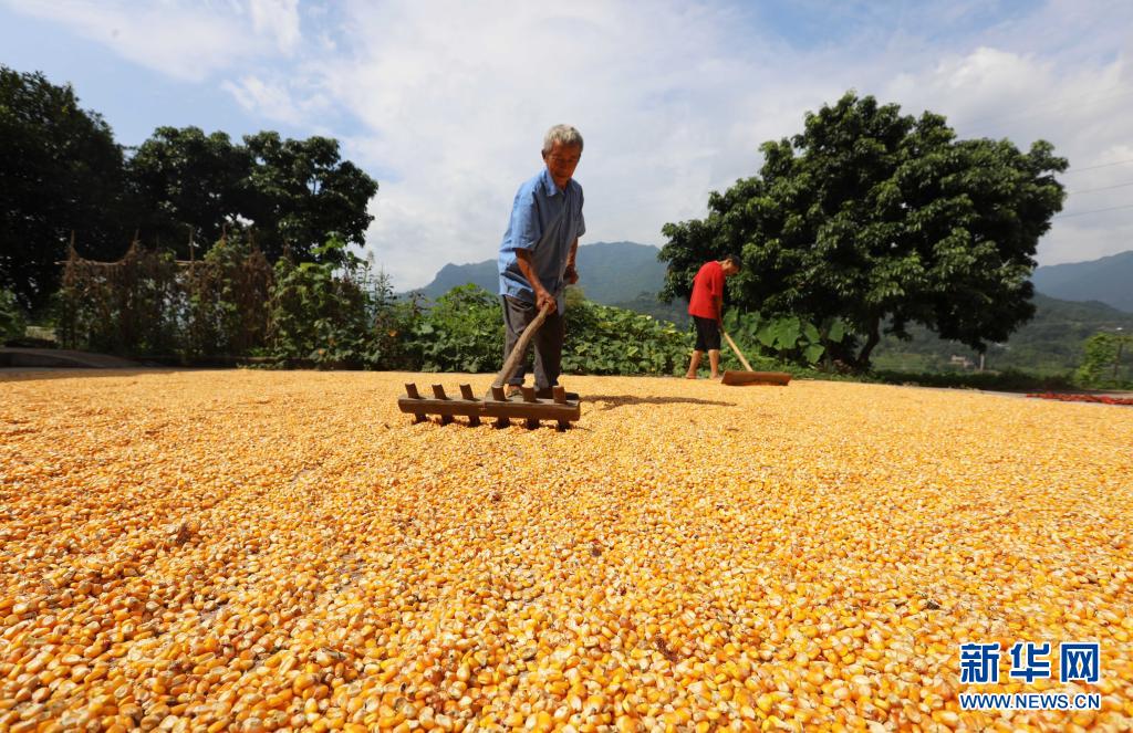 8月17日,赤水市長(zhǎng)期鎮(zhèn)華陽(yáng)村的村民在晾曬玉米。