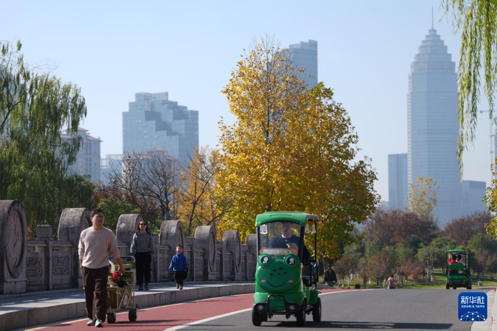 11月30日,家长带着小朋友在绍兴迪荡湖景区玩耍。