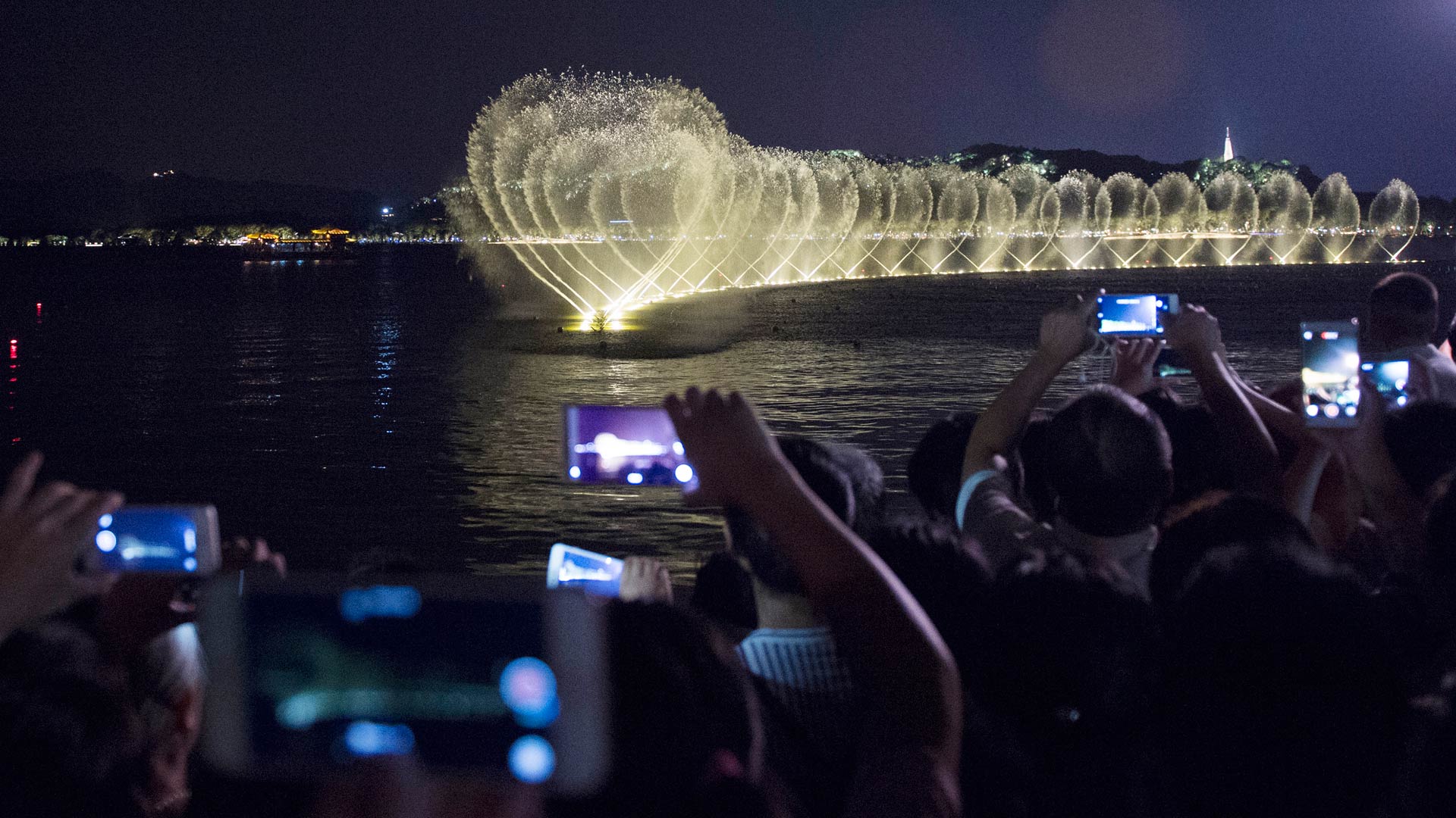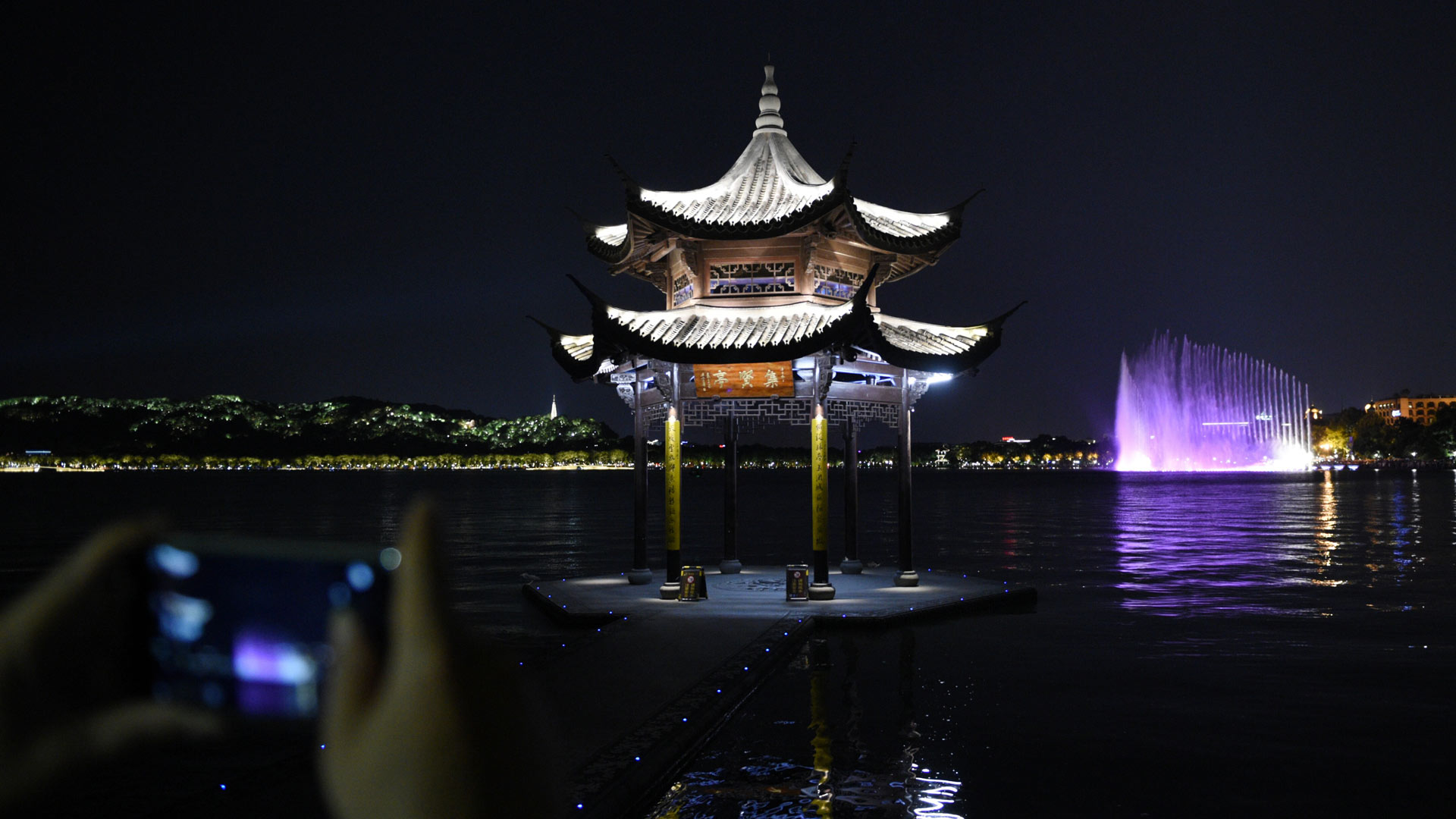8月24日,游客在西湖邊欣賞西湖音樂噴泉。 2011年6月24日第35屆世界遺產(chǎn)大會(huì)審議表決,“杭州西湖文化景觀”入選世界遺產(chǎn)名錄。9月初,G20峰會(huì)將在杭州舉行,西湖這座承載了悠久文化的名湖也將迎來更多來自世界各地的客人。(新華社記者 鞠煥宗 攝)