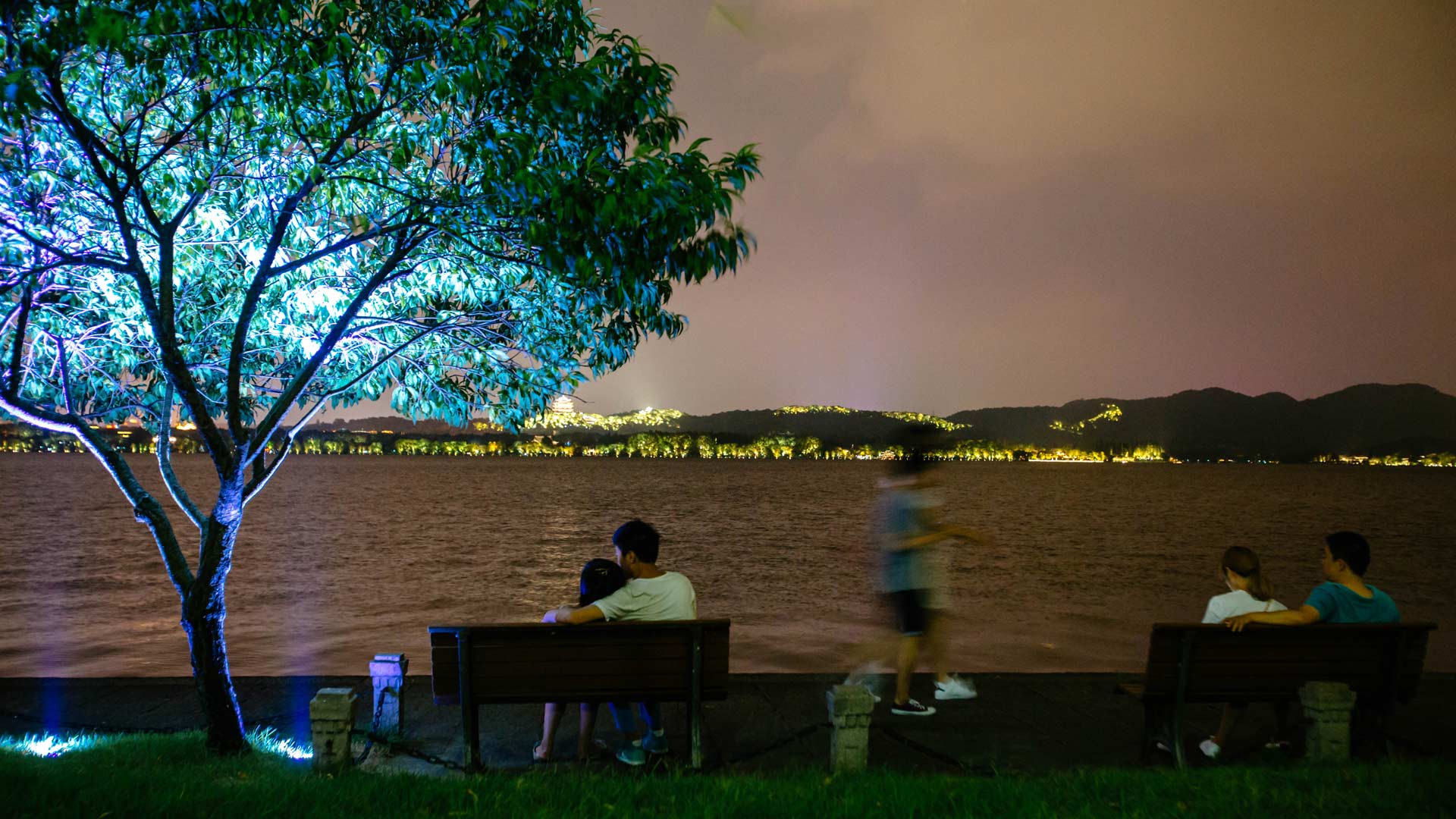 8月26日晚,市民在西子湖畔欣賞夜色。一枕錢塘江,懷擁西湖月,牽著運(yùn)河走,挽著西溪眠……到訪杭州,游人無不感嘆驚奇這座城市的美麗與優(yōu)雅。新華社記者張鋮攝