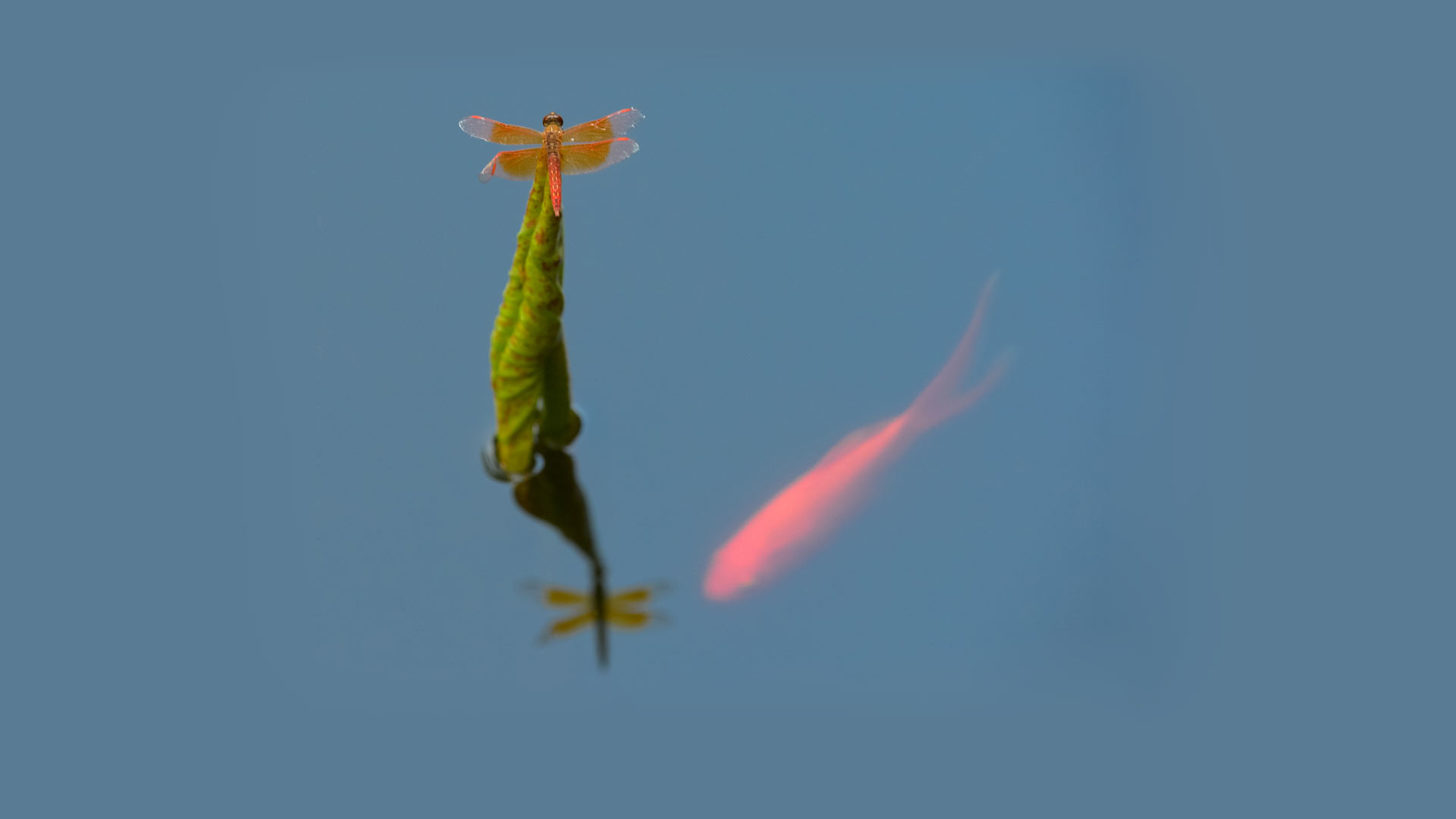 杭州西湖錢王祠門前荷塘里的錦鯉與蜻蜓(8月29日攝)。 新華社記者 尹棟遜 攝