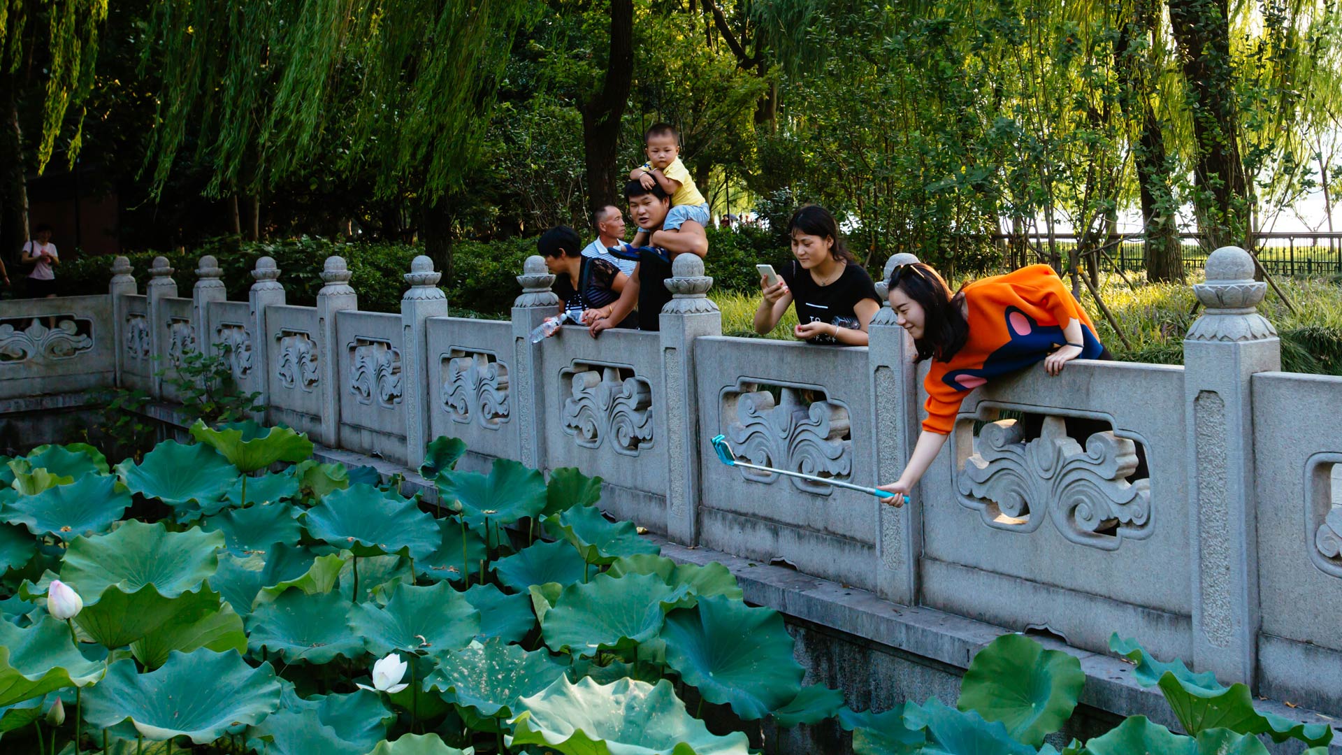 8月27日,游客在西湖邊涌金橋欣賞西湖風(fēng)景。 新華社記者 鞠煥宗 攝