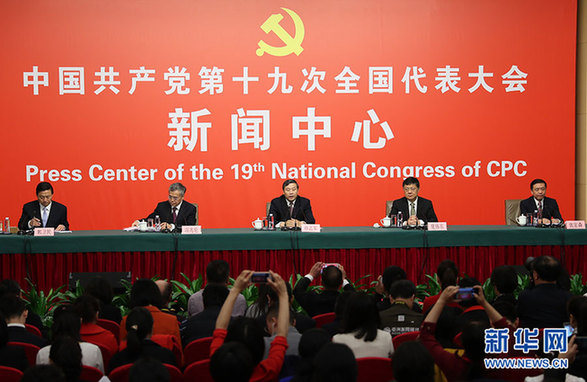10月20日,十九大新聞中心舉行記者會,邀請中宣部、中央文明辦、文化部、新聞出版廣電總局相關負責人介紹加強思想道德和文化建設情況,并回答記者提問。圖為記者會現(xiàn)場。新華網(wǎng) 郝廣鵬 攝