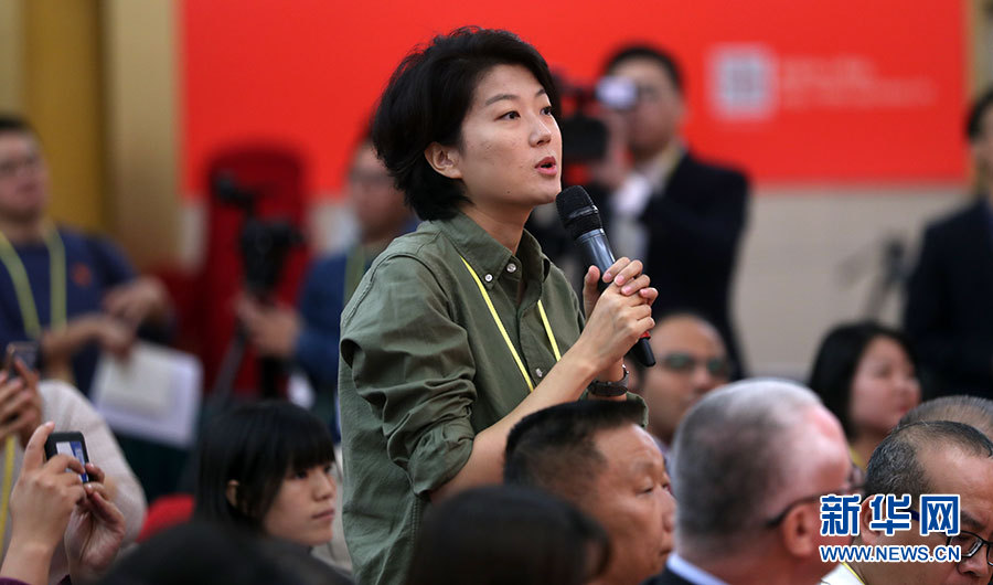 ??? 10月20日,十九大新聞中心舉辦集體采訪活動,主題為“實施創新驅動發展戰略”。圖為中國國際廣播電臺記者提問。新華網 郝廣鵬攝