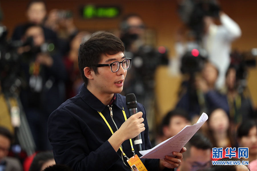 10月22日,十九大新聞中心在梅地亞中心二層新聞發(fā)布廳舉辦集體采訪活動(dòng),主題為“中國(guó)特色強(qiáng)軍之路邁出堅(jiān)定步伐”。圖為中評(píng)社記者提問(wèn)。新華網(wǎng) 郝廣鵬攝