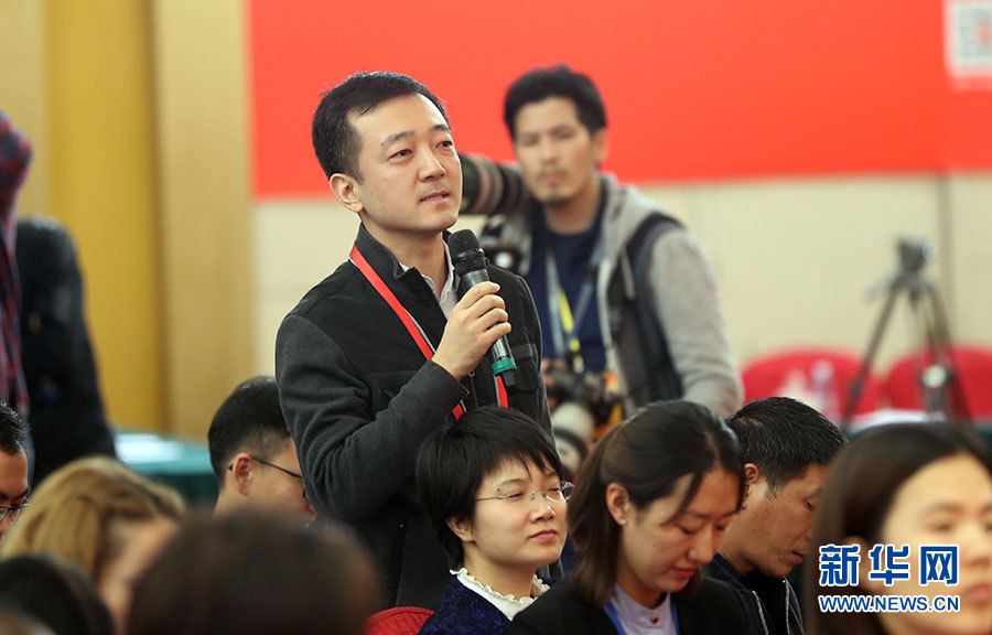 10月22日,十九大新聞中心在梅地亞中心二層新聞發布廳舉辦集體采訪活動,主題為“中國特色強軍之路邁出堅定步伐”。圖為中央人民廣播電臺記者提問。新華網 郝廣鵬攝