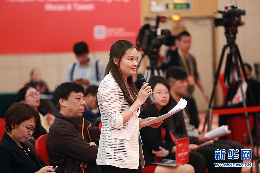 10月23日,十九大新聞中心舉辦集體采訪活動,主題為“打好生態環保攻堅戰”。圖為中國冶金報記者提問。新華網 郝廣鵬攝