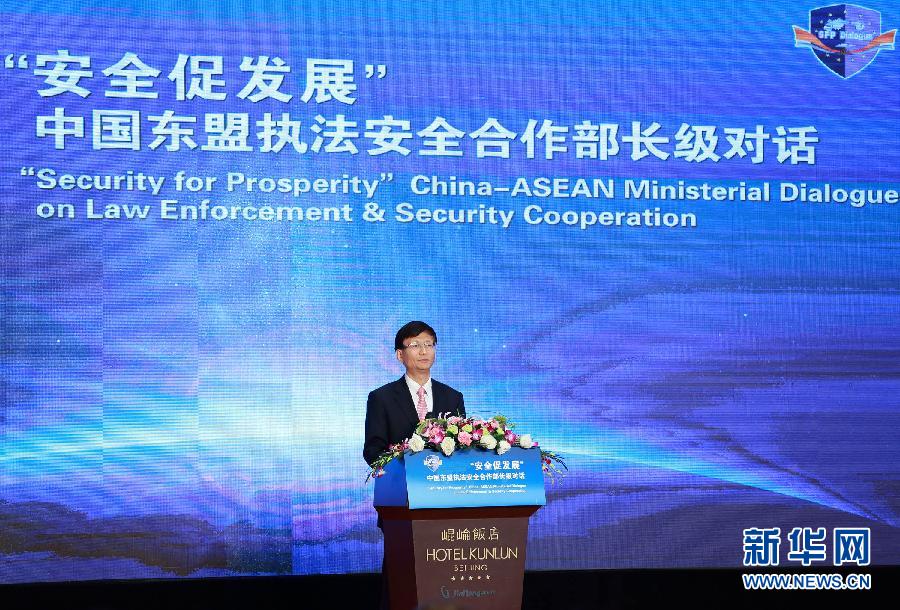 ??? 10月23日,“安全促發展”中國東盟執法安全合作部長級對話在北京舉行。這是中共中央政治局委員、中央政法委書記孟建柱致開幕辭。新華社記者 丁海濤 攝