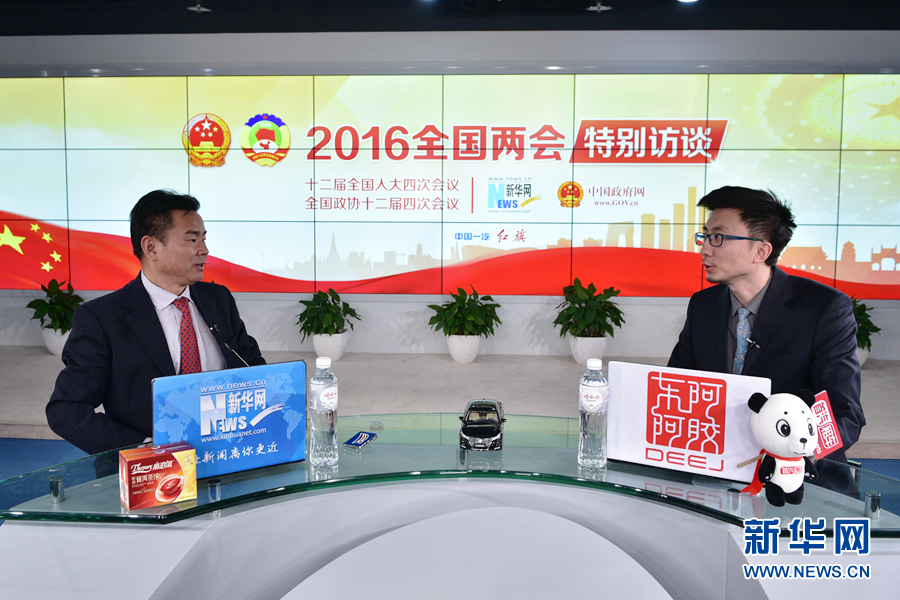 ????2016年3月13日,全國人大代表、海南省三沙市委書記、市政府市長肖杰做客新華網兩會訪談直播間。圖為肖杰回答主持人提問。新華網 郭小天 攝