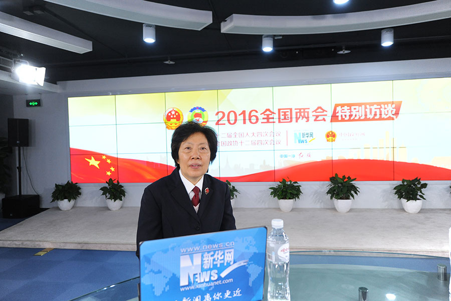 2016年3月14日,最高人民檢察院黨組副書記、常務副檢察長胡澤君做客新華網(wǎng)兩會訪談直播間。圖為胡澤君在訪談現(xiàn)場。新華網(wǎng) 賈振 攝
