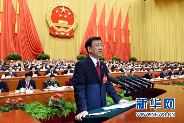 3月13日,十二屆全國人大四次會議在北京人民大會堂舉行第三次全體會議。最高人民檢察院檢察長曹建明作最高人民檢察院工作報告。 新華社記者饒愛民 攝