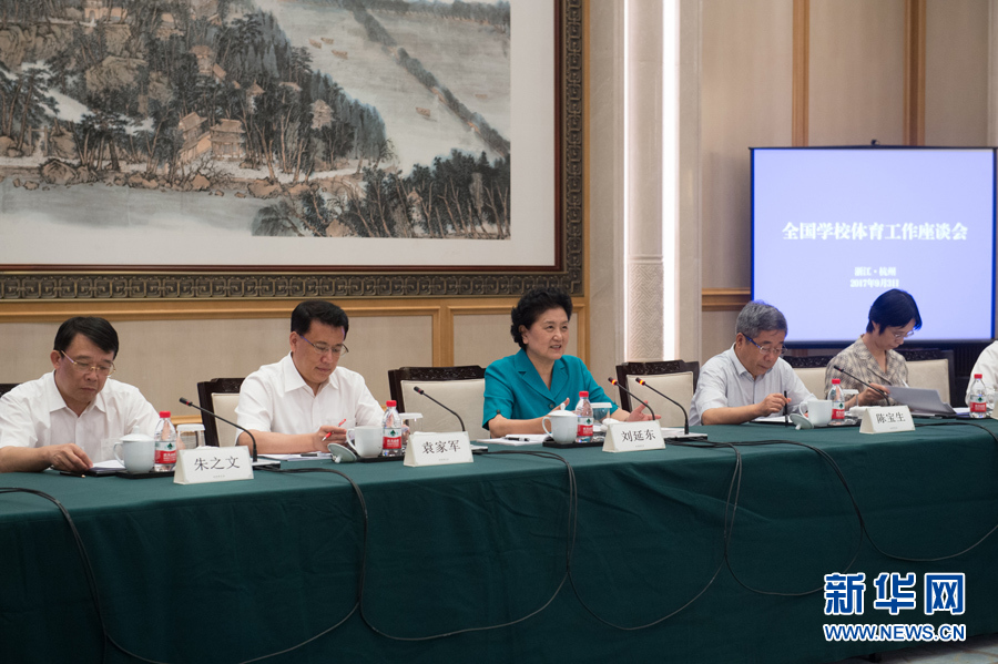 9月3日,中共中央政治局委員、國務院副總理劉延東在杭州出席全國學校體育工作座談會。 新華社記者 翁忻旸 攝
