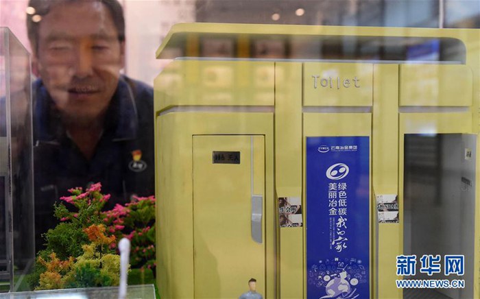 云南冶金昆明重工有限公司首席技師耿家盛在他帶隊(duì)研發(fā)的生態(tài)環(huán)保廁所的模型前(9月22日攝)。新華社記者 藺以光 攝