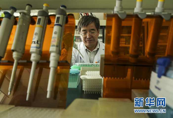 9月20日,何中虎在國(guó)家小麥改良中心實(shí)驗(yàn)室做小麥分子標(biāo)記檢測(cè)。新華社記者 殷剛 攝