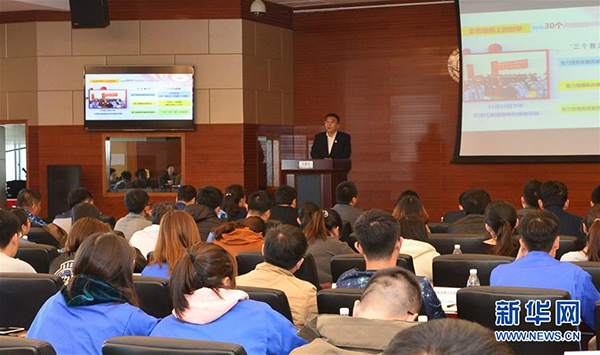 在國網天津濱海公司,張黎明在“十九大代表與國資系統青年面對面宣講會”上宣講十九大精神(11月10日攝)。 新華社發