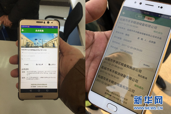 圖為“滿意蘇糧”App預約賣糧的操作界面。新華網汪亞/攝