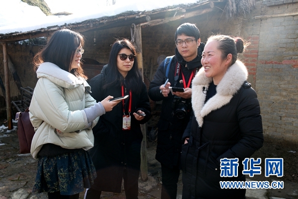 小崗村養豬大戶殷玉榮接受記者采訪。 新華網 趙鳳艷 攝