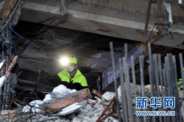 事態果然如傅崐萁所擔心的,隨著大雨不斷,幾乎每個小時都有余震,搜救環境變得越來越惡劣,到下午4點左右,由于大樓固定鋼梁出現滑動情形,救災人員不得不從樓中撤出,救災工作暫停。現場施工人員運來巨大的攔洪用消波水泥塊及混凝土,澆筑成鋼梁的基樁,以避免建筑物因余震造成二次損傷,保證搜救人員安全。