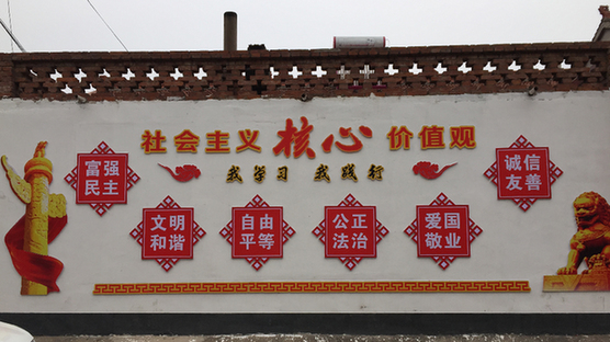 圖為南石村委辦公樓對面引人注目的標語。新華網記者 陳麗 攝