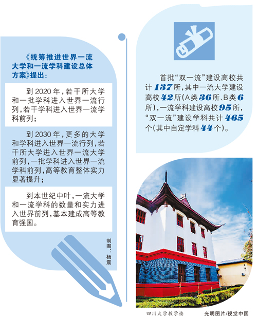 自2015年中央全面深化改革領(lǐng)導(dǎo)小組會議審議通過《統(tǒng)籌推進(jìn)世界一流大學(xué)和一流學(xué)科建設(shè)總體方案》以來,“雙一流”一直是牽動眾多高校目光的關(guān)鍵詞:2017年9月,“雙一流”建設(shè)名單公布;2017年歲末,眾多入選高校紛紛公布自己的一流大學(xué)建設(shè)方案,“雙一流”建設(shè)正式破土動工;今年政府工作報(bào)告提出,以經(jīng)濟(jì)社會發(fā)展需要為導(dǎo)向,優(yōu)化高等教育結(jié)構(gòu),加快“雙一流”建設(shè),支持中西部建設(shè)有特色、高水平大學(xué)。