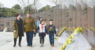 清明節(jié)前夕,來自浙江寧波、陜西西安和咸陽、遼寧沈陽和錦州的部分抗美援朝烈士親屬和志愿者在抗美援朝志愿軍老戰(zhàn)士的帶領(lǐng)下,來到沈陽抗美援朝烈士陵園緬懷、悼念革命先烈。辛陽 樊洪波 影報道