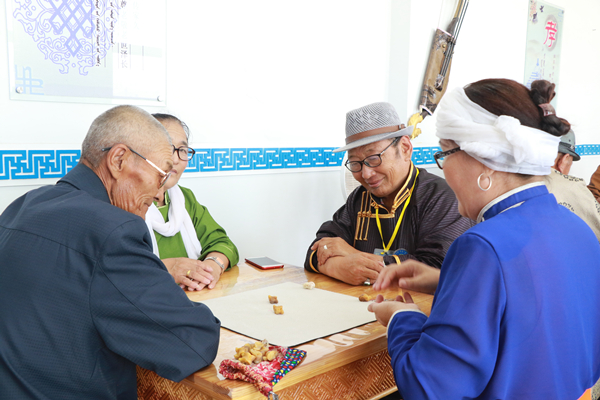 在錫林浩特市愛祺樂牧民養(yǎng)老園區(qū),記者看到了這樣的畫面:身著鮮艷蒙古族服裝的老人們,三五成群聚在一起,唱歌、跳舞、練書法、玩沙嘎、縫制民族服飾……生活豐富多彩!當(dāng)天正值園區(qū)開那達(dá)慕,跟草原上的那達(dá)慕大會(huì)不同,這里是專門為園區(qū)的老人而開。“老人們歲數(shù)大了,不能出遠(yuǎn)門去看那達(dá)慕,我們就專門為他們辦了一個(gè),腿腳不好的老人也能看。”錫林浩特市巴彥查干街道黨工委書記額爾德木圖說。