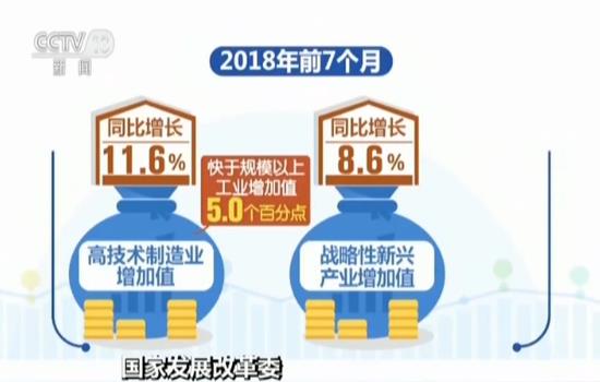 今年前7個月,高技術制造業、戰略性新興產業增加值同比分別增長11.6%和8.6%,分別快于規模以上工業5.0和2.0個百分點;高技術制造業占規模以上工業比重已經達到13%,同比提高0.7個百分點。