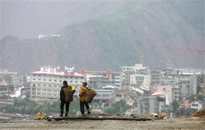 2008年6月22日,北川萬名災(zāi)民雨中搬家。資料圖片/新京報記者 薛珺 攝