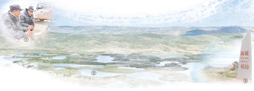 圖①:三江源國家公園保護(hù)人員在巡山途中。記者 姜峰 攝