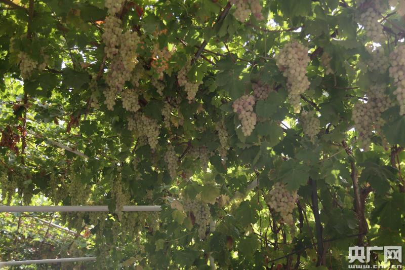 營區一簇簇的葡萄(央廣網記者 李建峰 攝)