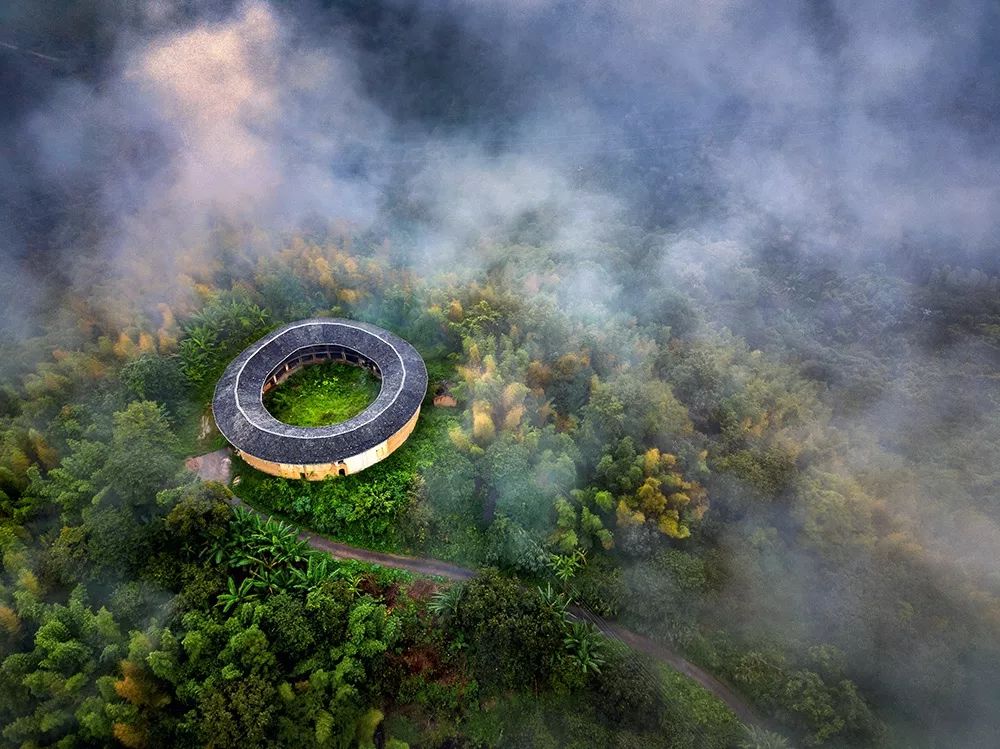 2018-09-16,福建龍巖。土樓倚山偎翠,方圓錯落,似古堡巍峨蒼樸。作者:張煒