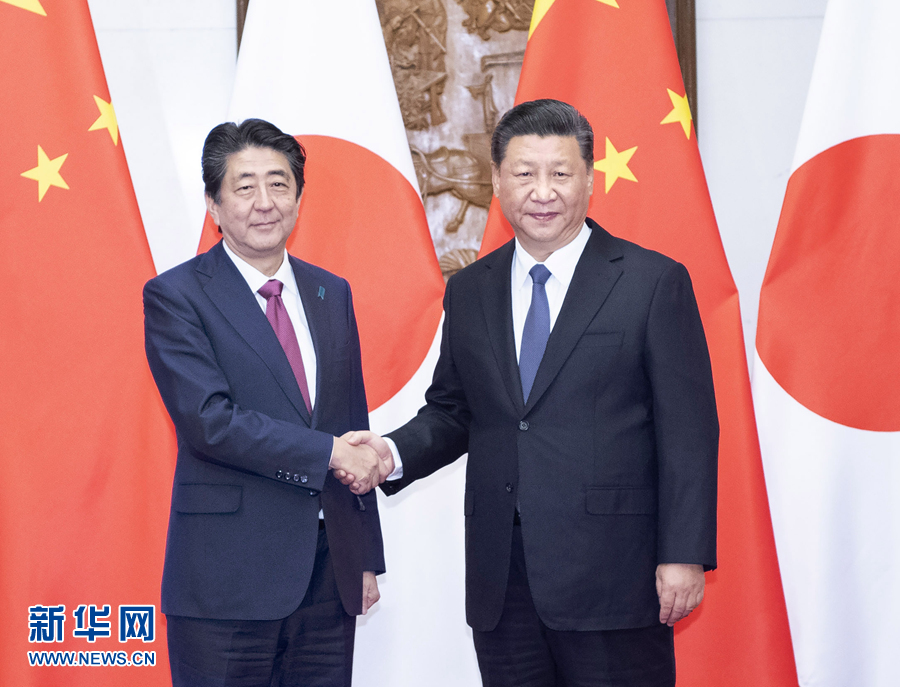 習近平歡迎安倍正式訪華,贊賞安倍近年來多次表明改善和發展中日關系的積極意愿。習近平指出,中日是近鄰,兩國利益高度交融。作為世界主要經濟體和有重要影響的國家,中日關系長期健康穩定發展,符合兩國人民根本利益,也是本地區和國際社會普遍期待。今年是中日和平友好條約締結40周年。1978年,兩國老一輩領導人締結和平友好條約,以法律形式確定了兩國持久和平友好大方向,為雙方開展互利合作、謀求共同發展以及妥善處理歷史、臺灣等敏感問題提供了堅實遵循和保障。在雙方共同努力下,當前中日關系重回正常軌道,重現積極勢頭。這值得雙方共同珍惜。雙方要遵循中日四個政治文件確立的各項原則,堅持和平友好大方向,持續深化互利合作,推動中日關系在重回正軌基礎上得到新的發展。