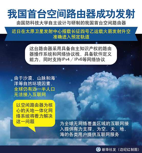 我國首臺空間路由器成功發射