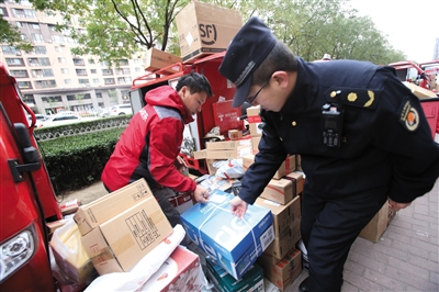 今年“雙十一”旺季壓力主要集中在收派環(huán)節(jié)。據(jù)市郵政管理局相關(guān)負(fù)責(zé)人介紹,在北京市“疏解整治促提升”和“減量發(fā)展”大背景下,北京已由快遞輸出城市轉(zhuǎn)變?yōu)檩斎氤鞘校衲昵熬艂€(gè)月,進(jìn)京量比出京量多出1.3億件,特別是中心城區(qū)的投遞業(yè)務(wù)占比持續(xù)上升,占全市比重的71%。隨著“雙十一”業(yè)務(wù)高峰來臨,將進(jìn)一步增大北京市快遞末端的收派壓力。