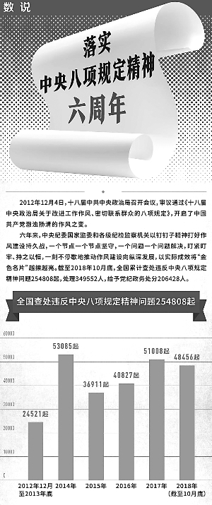今天是八項(xiàng)規(guī)定落實(shí)六周年 已處理省部級(jí)干部25人 縣處級(jí)干部28532人