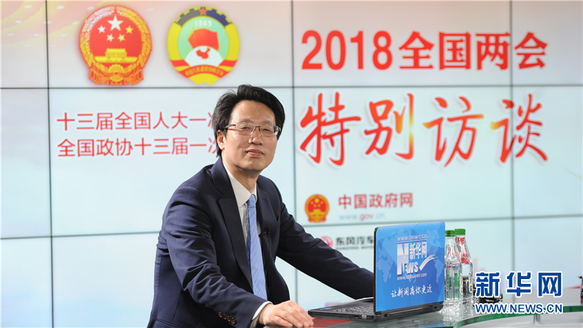 圖為,中國宏觀經(jīng)濟(jì)研究院常務(wù)副院長王昌林做客新華網(wǎng)2018全國兩會(huì)特別訪談“新跨越兩會(huì)專家講” 新華網(wǎng) 張斌攝?