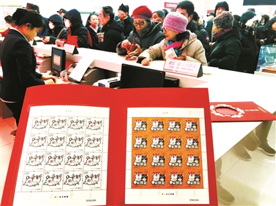 1月5日,市民在朝陽區(qū)郵票公司搶購豬年郵票
