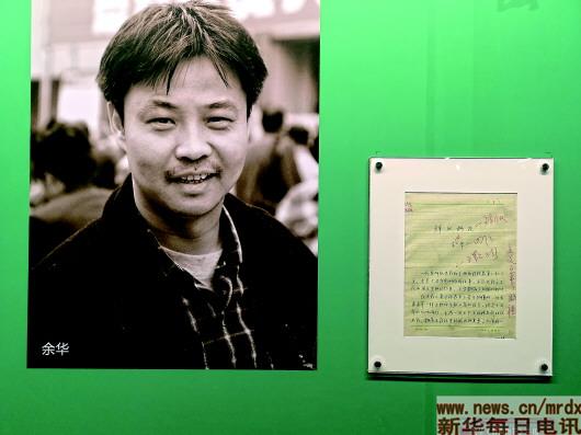 余華及其小說《鮮血梅花》手稿。記者張漫子攝