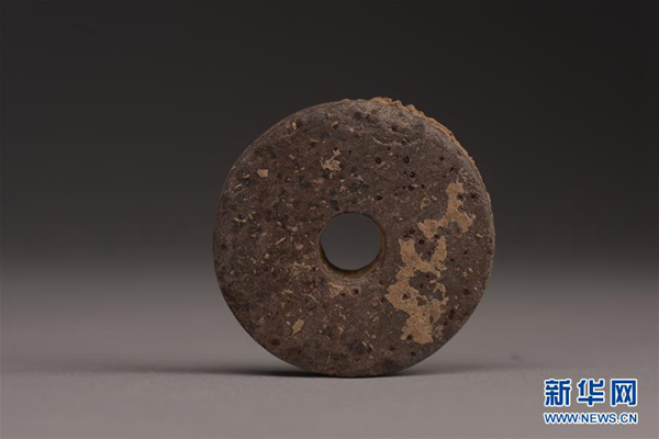 是河南鞏義雙槐樹遺址出土的紡輪(資料照片)。新華社發(鄭州市文物考古研究院提供)