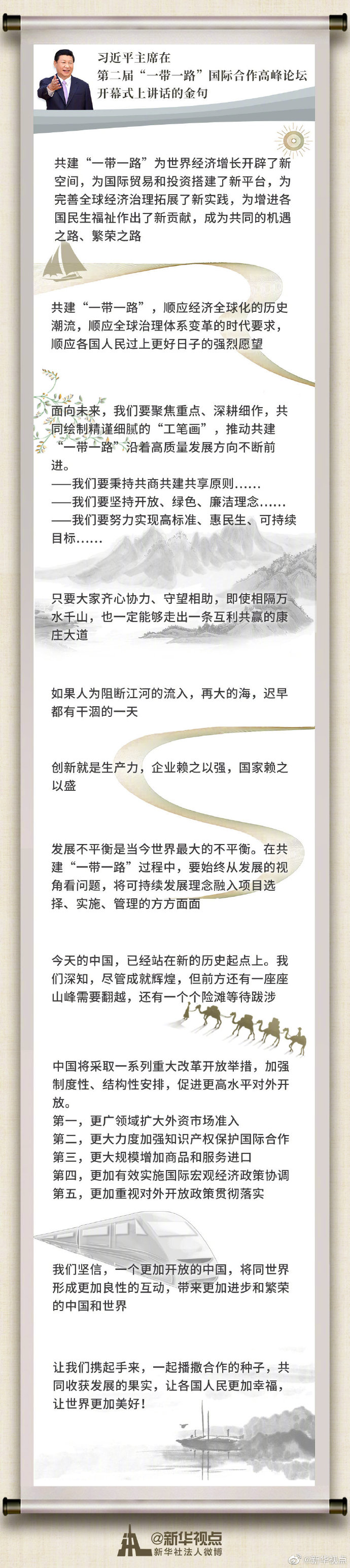 國(guó)家主席習(xí)近平26日上午在北京出席第二屆“一帶一路”國(guó)際合作高峰論壇開(kāi)幕式并發(fā)表主旨演講。速覽習(xí)近平主席講話(huà)金句↓ ?????
