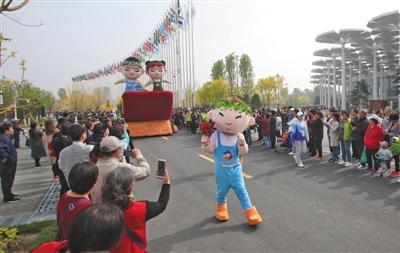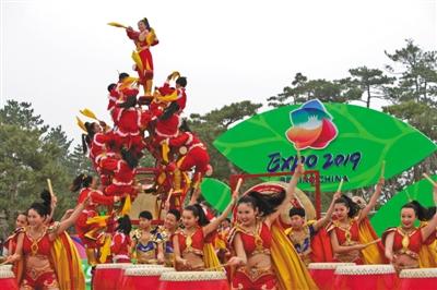 世園會開園首日的花車巡游于上午10時開始,表演時間為40分鐘。10時10分,花車從國際館附近緩緩經(jīng)過,吸引不少游客駐足觀看。
