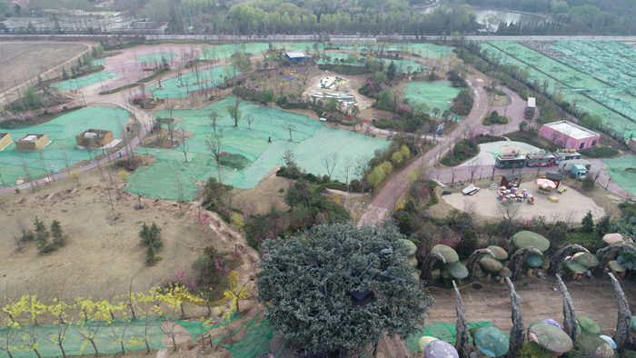 黃河大堤內修建的違建項目法莉蘭童話王國主題樂園航拍。李鵬 尚昆侖 攝
