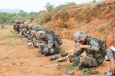 那天,某營組織20公里戰(zhàn)斗體能訓練,告別以往“埋鍋造飯”傳統(tǒng),采取模塊化飲食保障,利用簡易爐具對真空包裝食品進行加熱后食用……官兵的思維和行動都在轉(zhuǎn)變。
