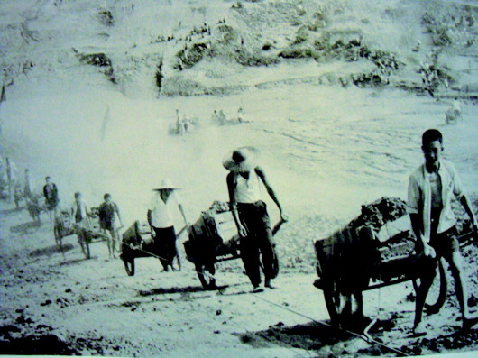1967年,荊州地區(qū)調(diào)集了京山、天門、荊門、鐘祥和潛江五個(gè)縣的數(shù)萬名民工與移民一起修筑了一條長(zhǎng)達(dá)45.4公里的漢江防洪堤,耗費(fèi)了土石共計(jì)6526萬立方米。這些土石足夠填滿4.5個(gè)西湖了。這么大的工程全靠移民和民工肩挑背扛板車推。此后每年,移民都在此基礎(chǔ)上不斷加高圍堤。